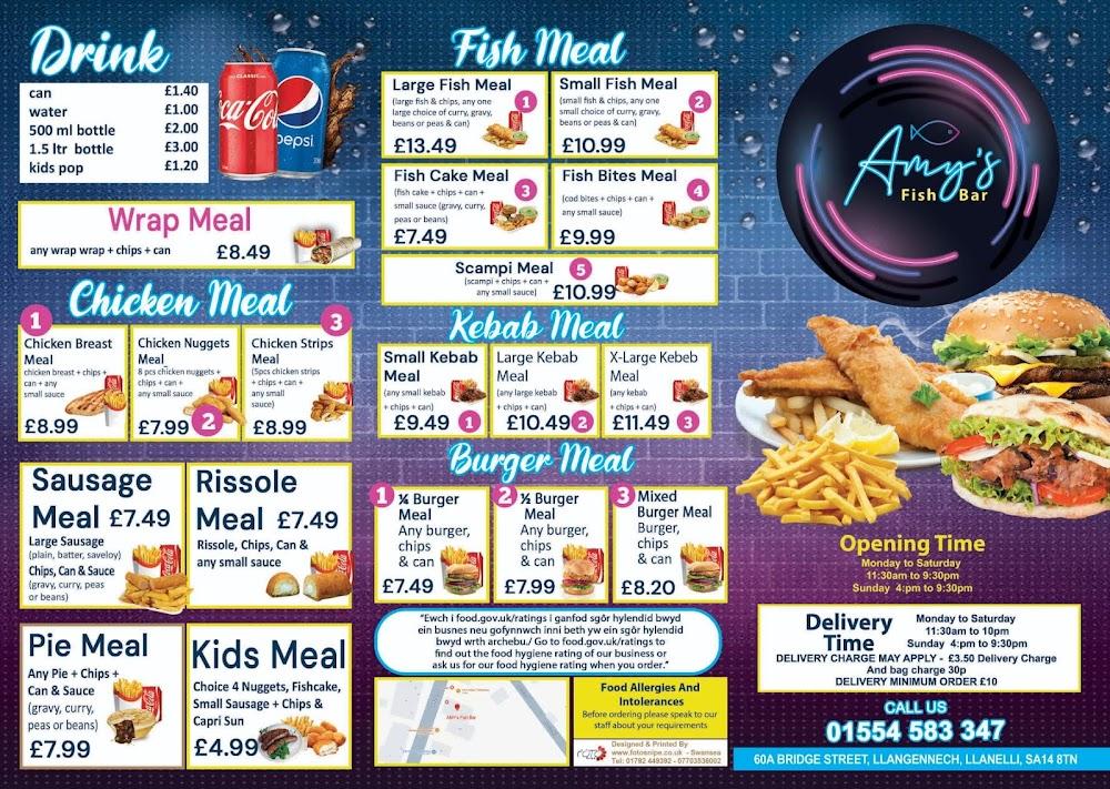 Nestled in Llangennech, Amy's Fish Bar stands proud on Bridge Street, close to local shops and residential neighborhoods. This charming fish and chips takeaway not only satiates appetites but also unites the community over a shared love of food. The warm and welcoming atmosphere makes every visit feel like a family gathering. Open every day of the week, this locale is perfect for casual dining or a takeaway after a long day. Its strategic location ensures it’s a go-to spot for people of all ages looking to indulge in classic comfort food. Anecdotes of friendly staff, particularly the cheerful one with a beard, spread around town, creating a buzz that draws customers in. Each dish, prepared with care, reflects a dedication to quality that doesn’t go unnoticed.
